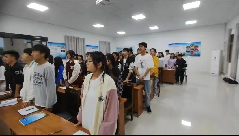 第一項(xiàng):全體起立,奏唱國歌、放共青團(tuán)團(tuán)歌