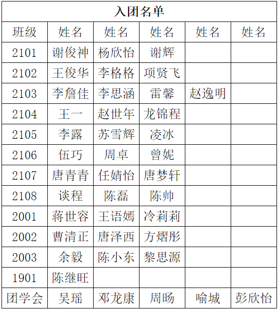 第二項(xiàng):由副校長胥光華宣布此次儀式的新團(tuán)員名單。此次入團(tuán)共有40名同學(xué)被光榮地批準(zhǔn)加入共青團(tuán)