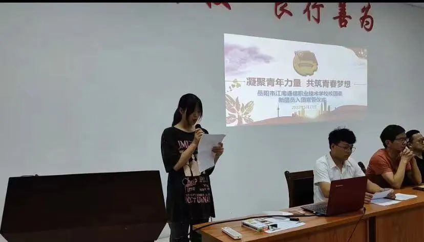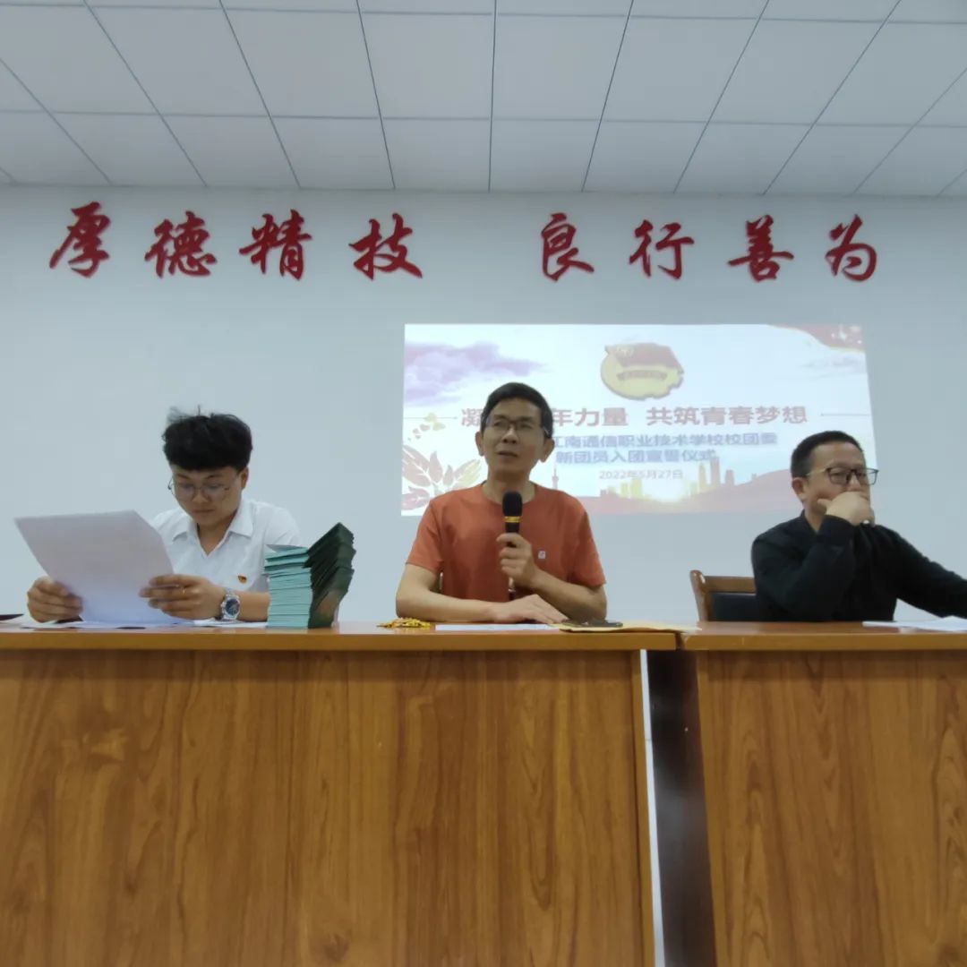 5月27日晚自習(xí),我校在會(huì)議室舉行“凝聚青年力量,共筑青春夢想”岳陽市江南通信職業(yè)技術(shù)學(xué)校2022年新團(tuán)員入團(tuán)儀式,團(tuán)委書記谷祥錦主持入團(tuán)儀式并代表學(xué)校向新團(tuán)員表示熱烈的祝賀和誠的歡迎,祝賀你們從此成為一名光榮的中國共產(chǎn)主義青年團(tuán)的團(tuán)員,你們的加入使我們學(xué)校團(tuán)組織壯大了力量,為我們團(tuán)組織輸入了新鮮血液,注入了新的活力。